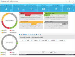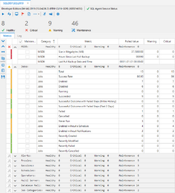 • Quickly see the most important metrics at a glance: Total monitored systems, Active SQL Agent services and DB Mail Sessions, total jobs, total running jobs and their overall success rate.